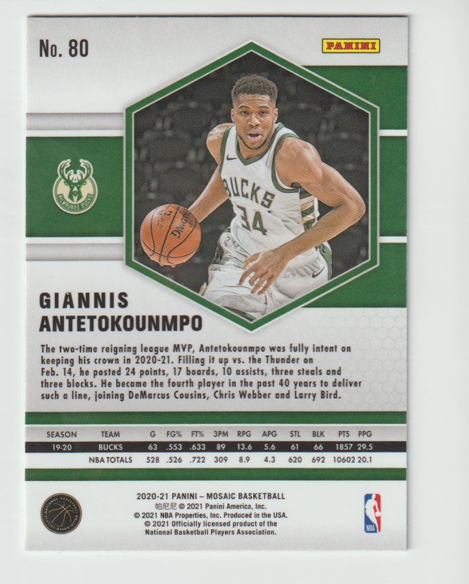 80 Giannis Antetokounmpo - Milwaukee Bucks 2020/21 Mosaic Basketball