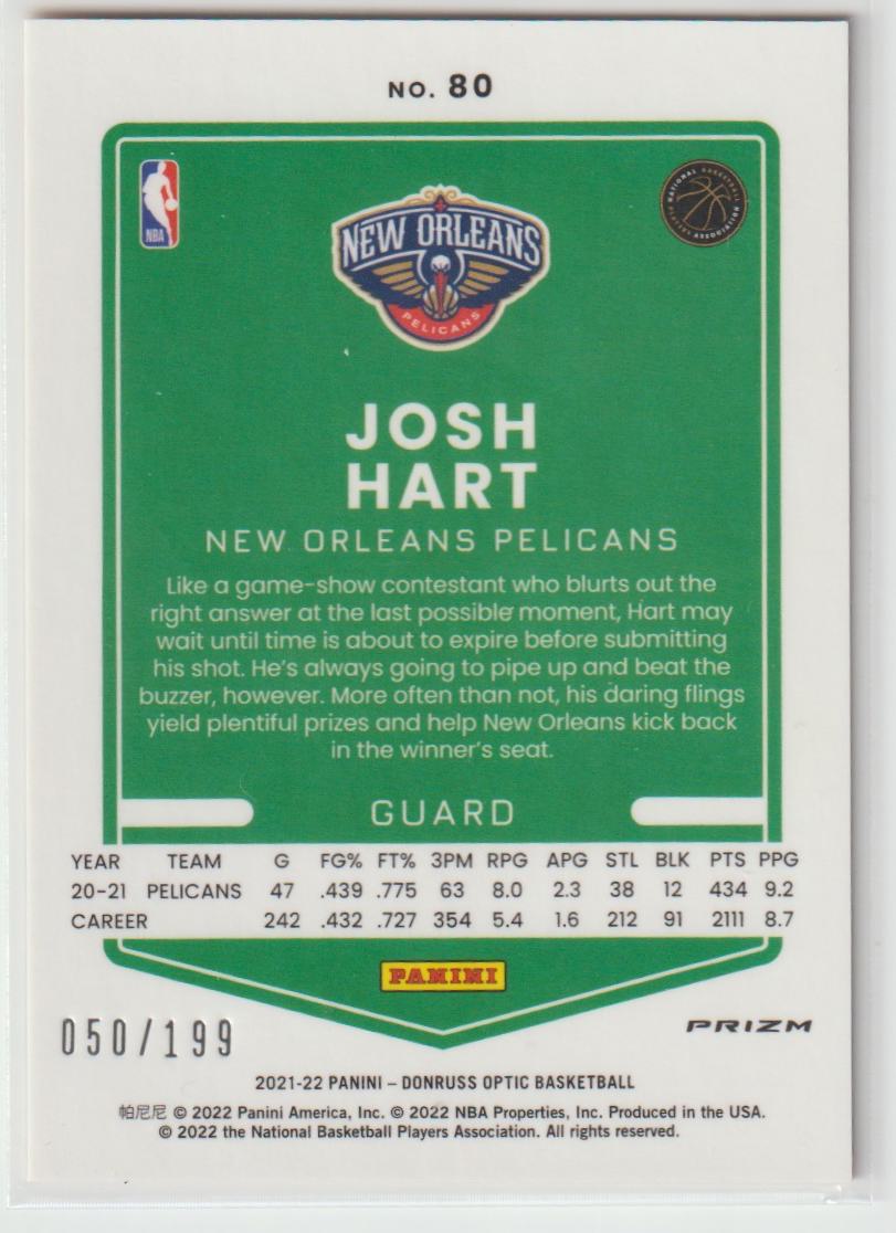 80 Josh Hart - New Orleans Pelicans Orange 50/199 2021/22 Donruss Optic Basketball