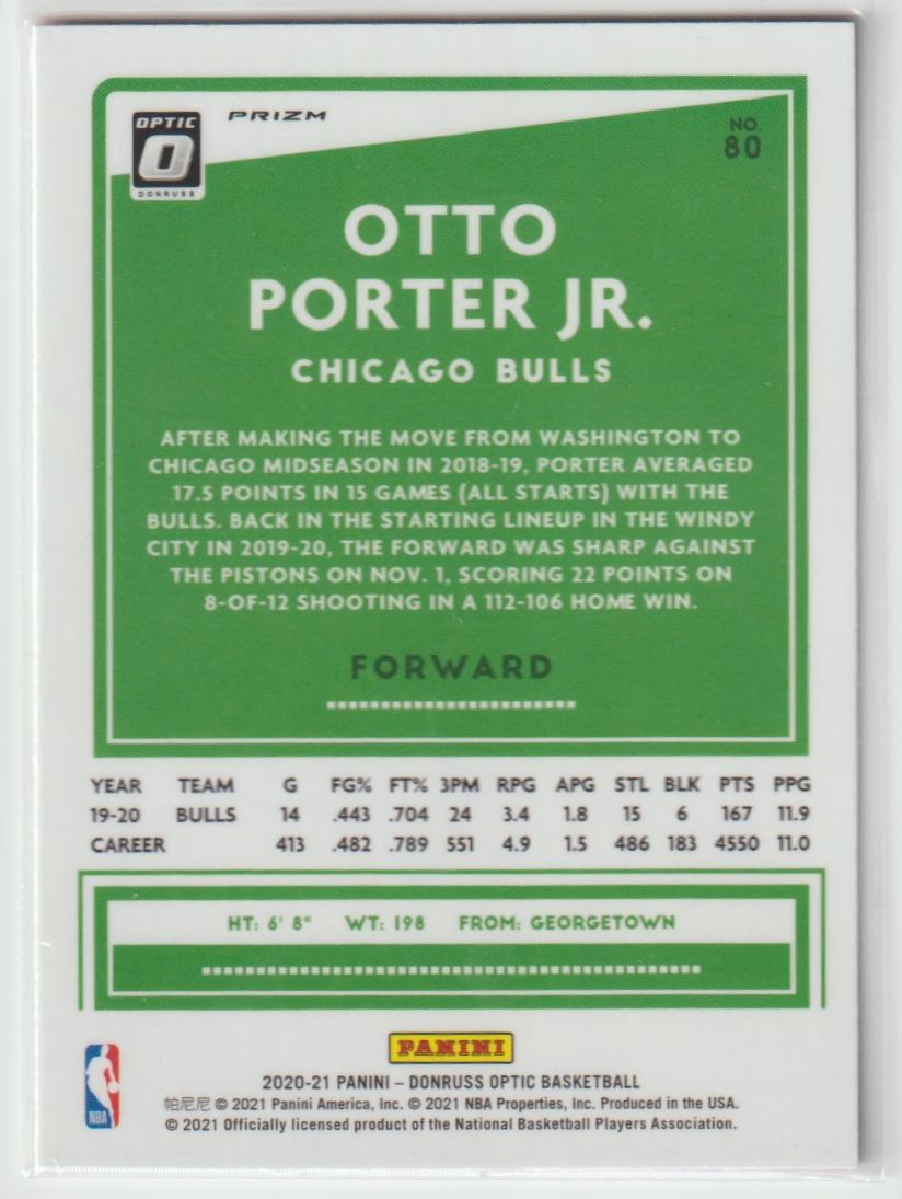 80 Otto Porter Jr. - Chicago Bulls Hyper Pink 2020/21 Donruss Optic Basketball