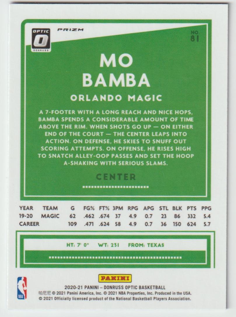 81 Mo Bamba - Orlando Magic Blue Velocity 2020/21 Donruss Optic Basketball