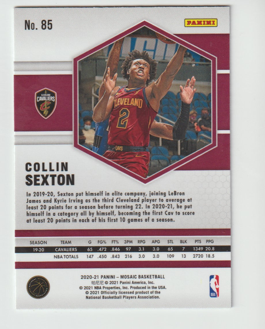 85 Collin Sexton - Cleveland Cavaliers 2020/21 Mosaic Basketball