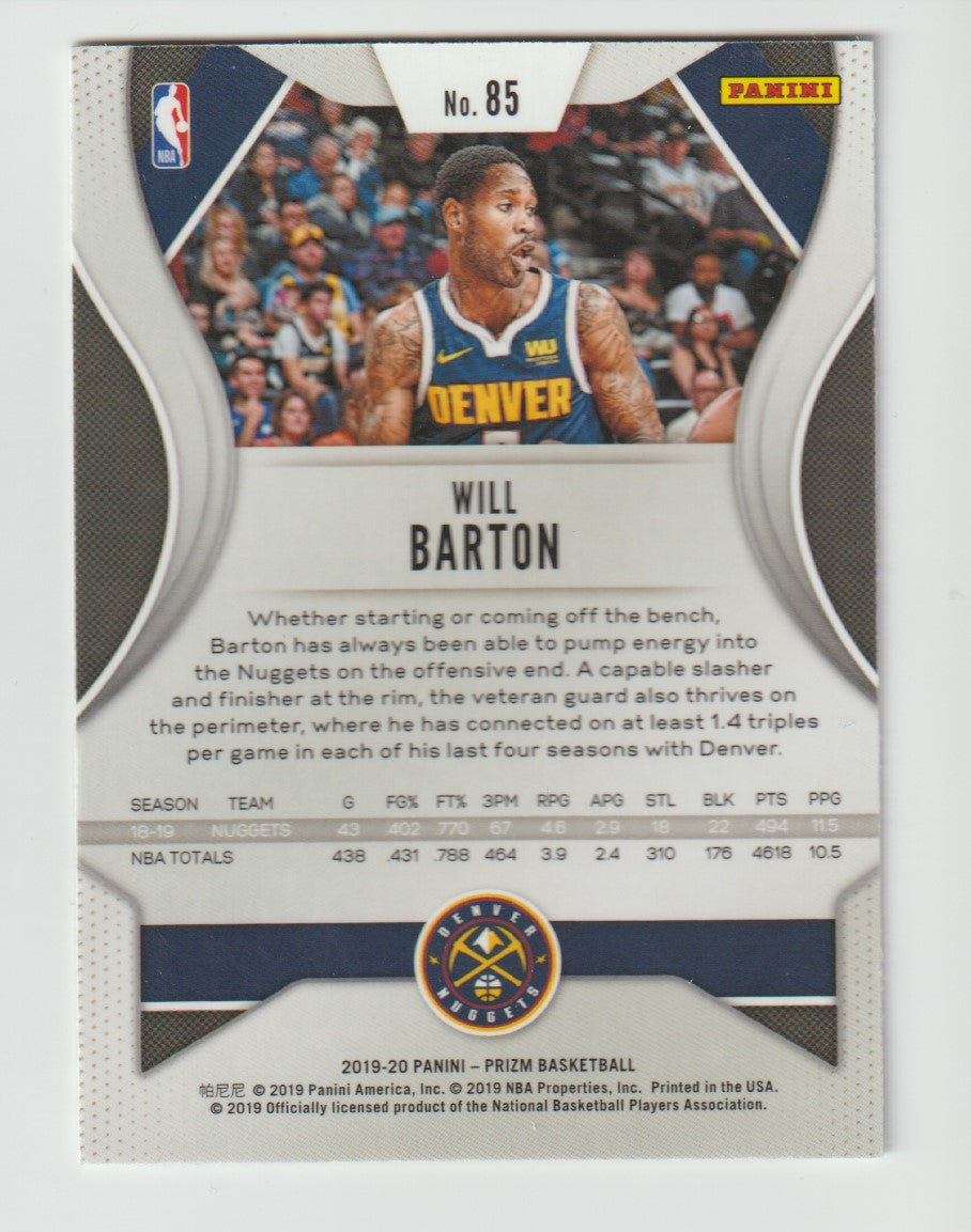 85 Will Barton - Denver Nuggets 2019/20 Prizm Basketball