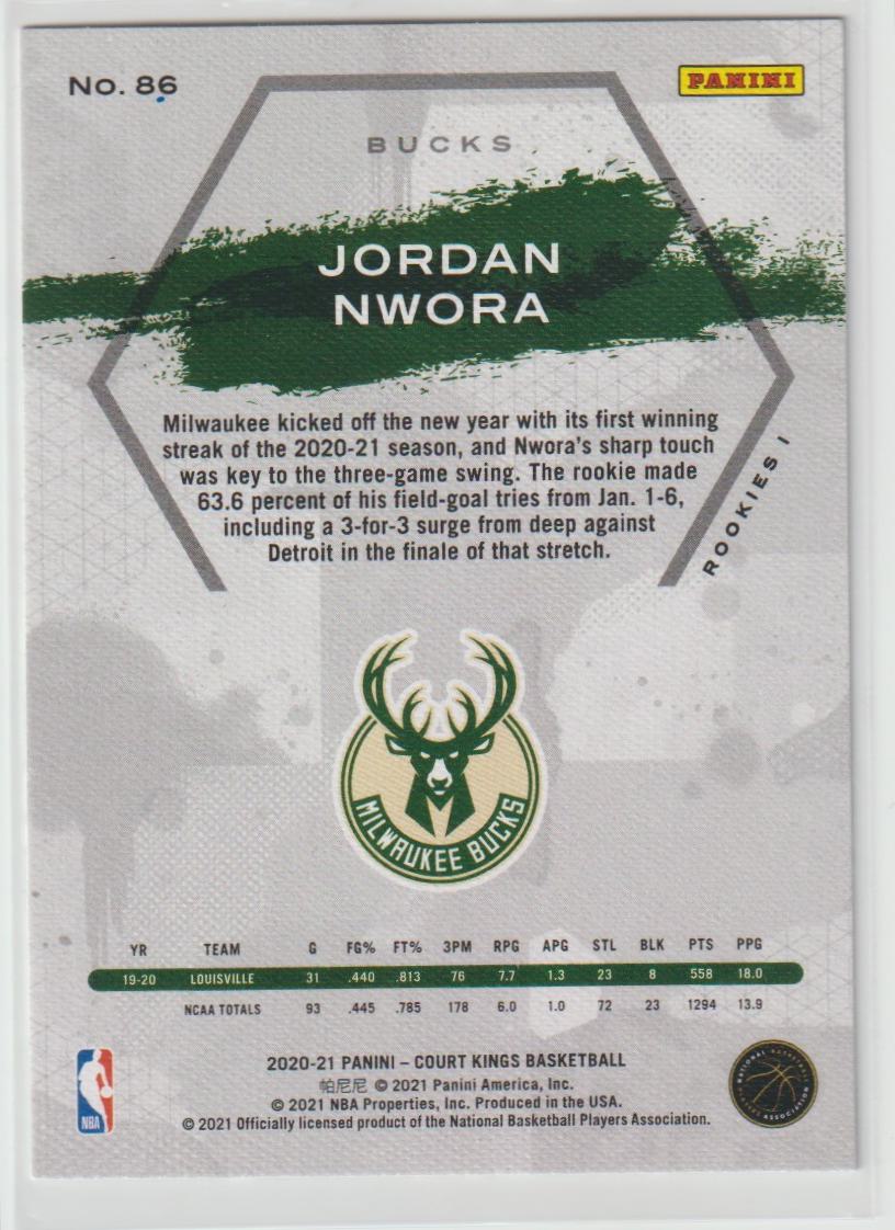 86 Jordan Nwora - Milwaukee Bucks Rookies I 2020/21 Court Kings Basketball