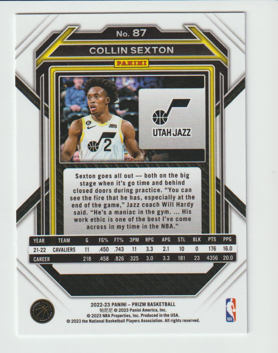 87 Collin Sexton - Utah Jazz 2022/23 Prizm Basketball