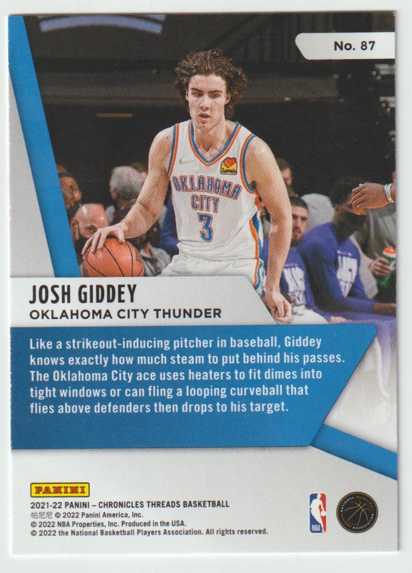 87 Josh Giddey - Oklahoma City Thunder 2021/22 Chronicles Basketball