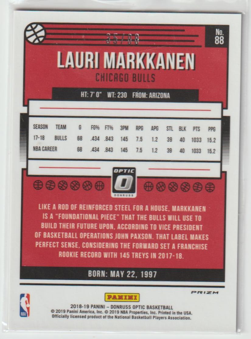 88 Lauri Markkanen - Chicago Bulls Red Choice 35/88 2018/19 Donruss Optic Basketball