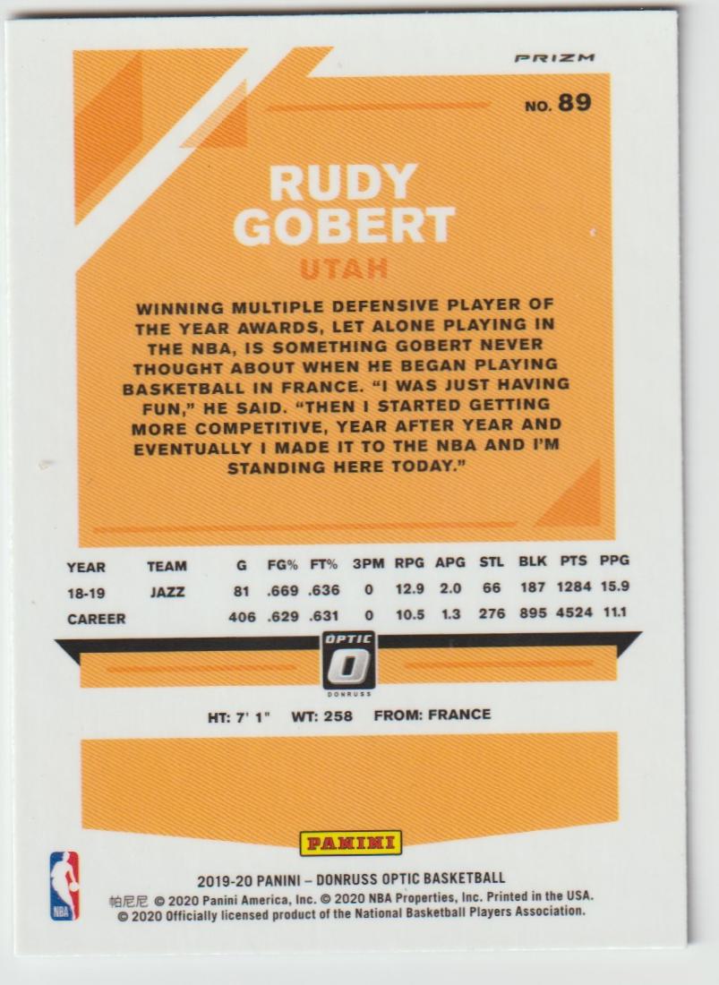 89 Rudy Gobert - Utah Jazz Purple 2019/20 Donruss Optic Basketball
