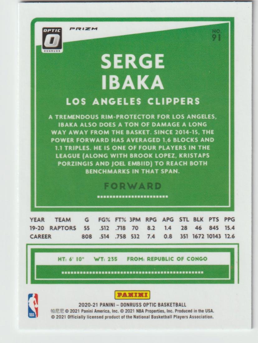 91 Serge Ibaka - Los Angeles Clippers Blue Velocity 2020/21 Donruss Optic Basketball