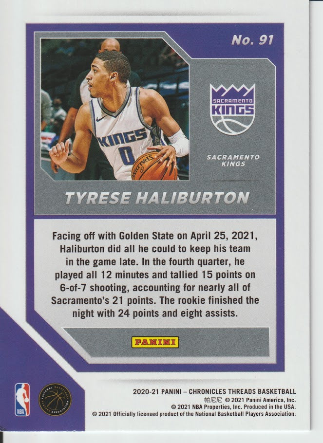 91 Tyrese Haliburton - Sacramento Kings 20/21 Chronicles Basketball