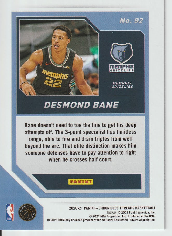 92 Desmond Bane - Memphis Grizzlies 20/21 Chronicles Basketball
