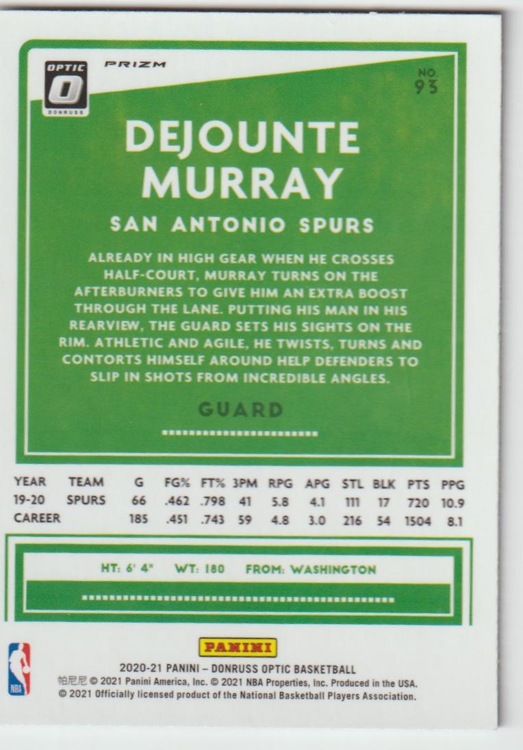 93 Dejounte Murray - San Antonio Spurs Purple 2020/21 Donruss Optic Basketball