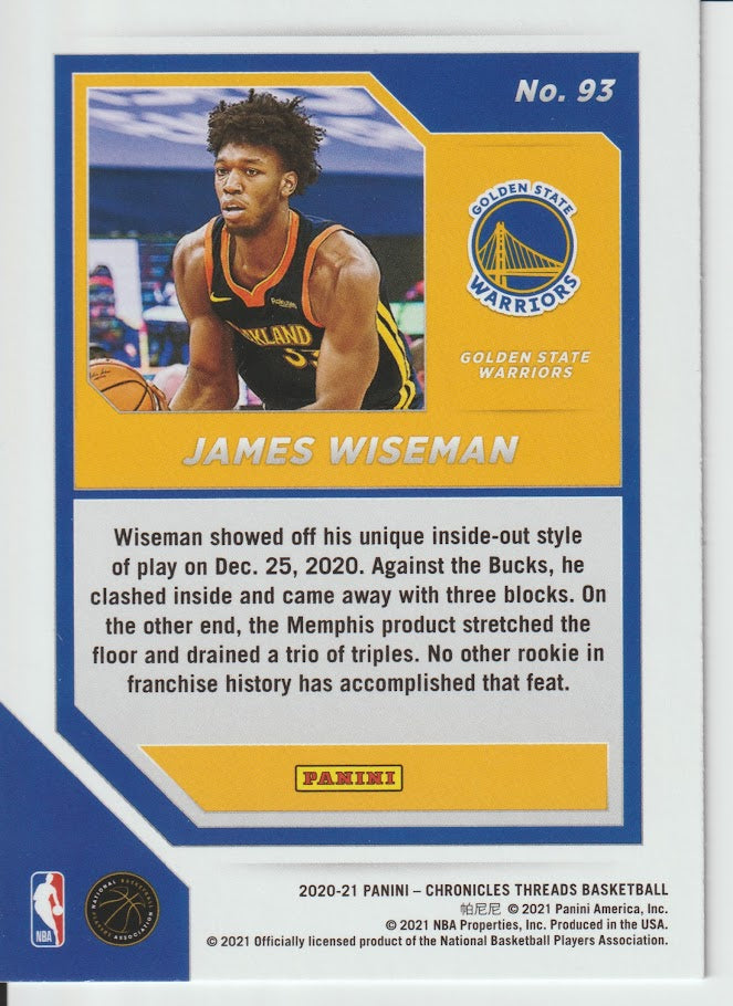 93 James Wiseman - Golden State Warriors 20/21 Chronicles Basketball