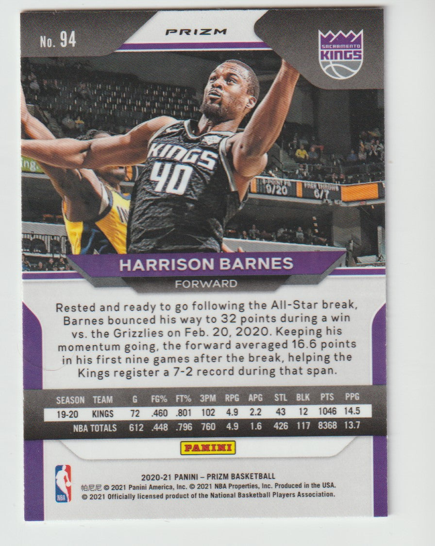 94 Harrison Barnes - Sacramento Kings Ruby Wave Prizm 2020/21 Prizm Basketball