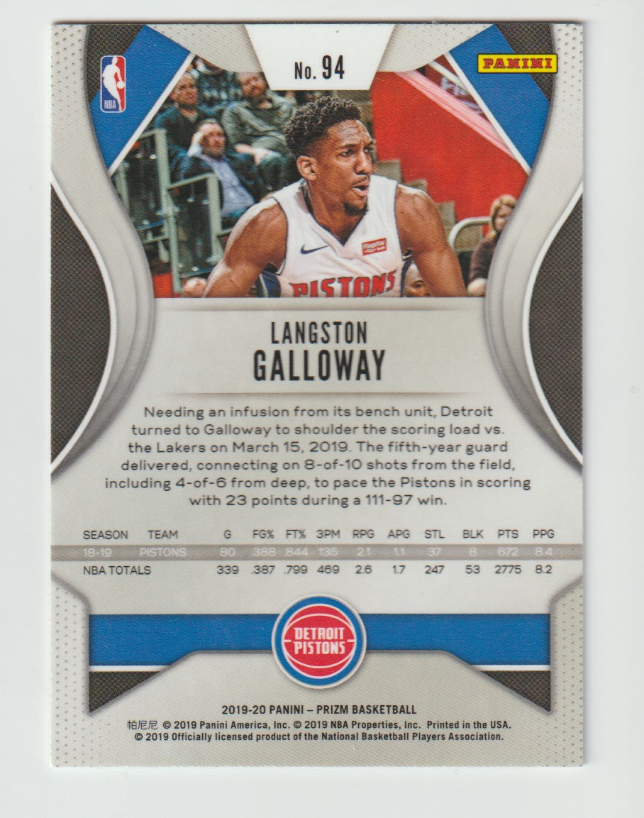 94 Langston Galloway - Detroit Pistons 2019/20 Prizm Basketball