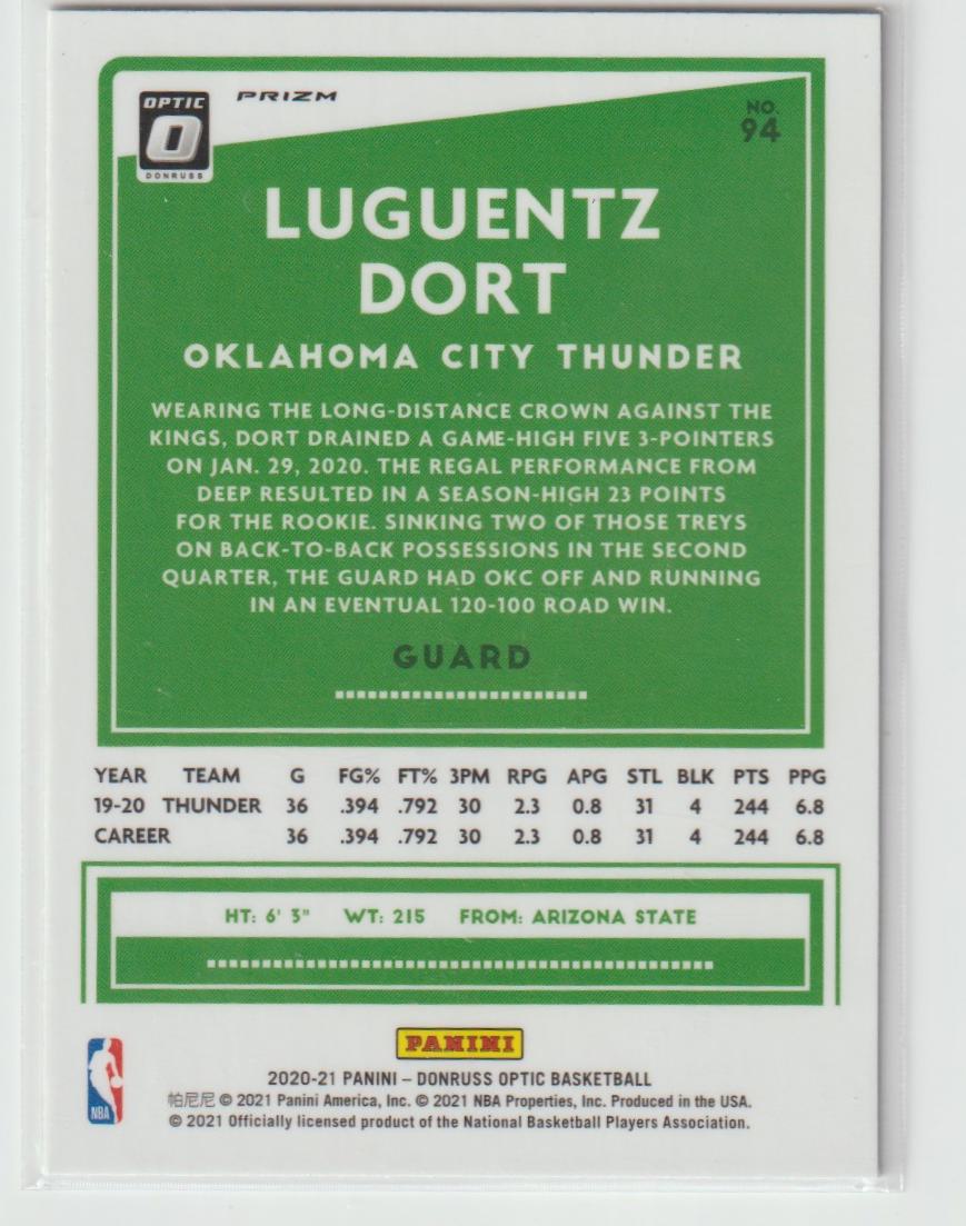 94 Luguentz Dort - Oklahoma City Thunder Holo 2020/21 Donruss Optic Basketball