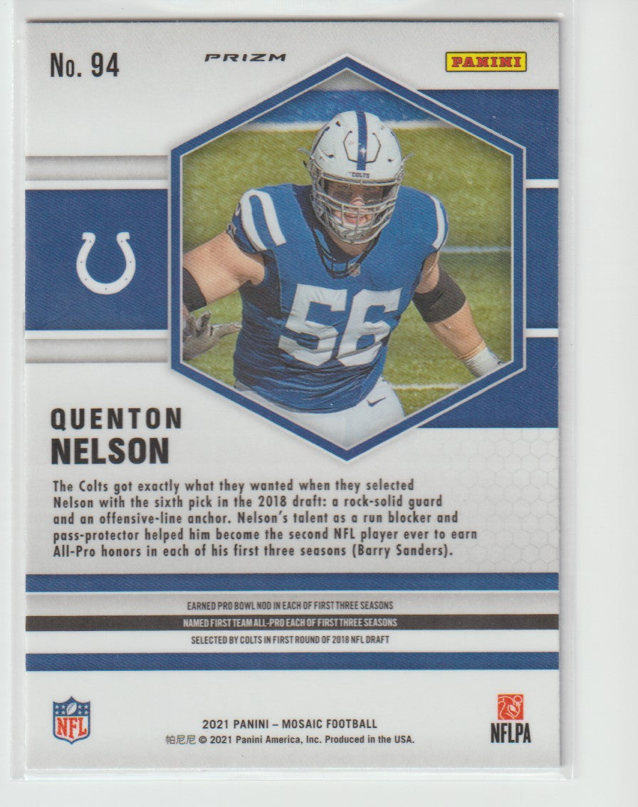 94 Quenton Nelson - Indianapolis Colts Camo Pink Parallel 2021 Mosaic Football, Ebay