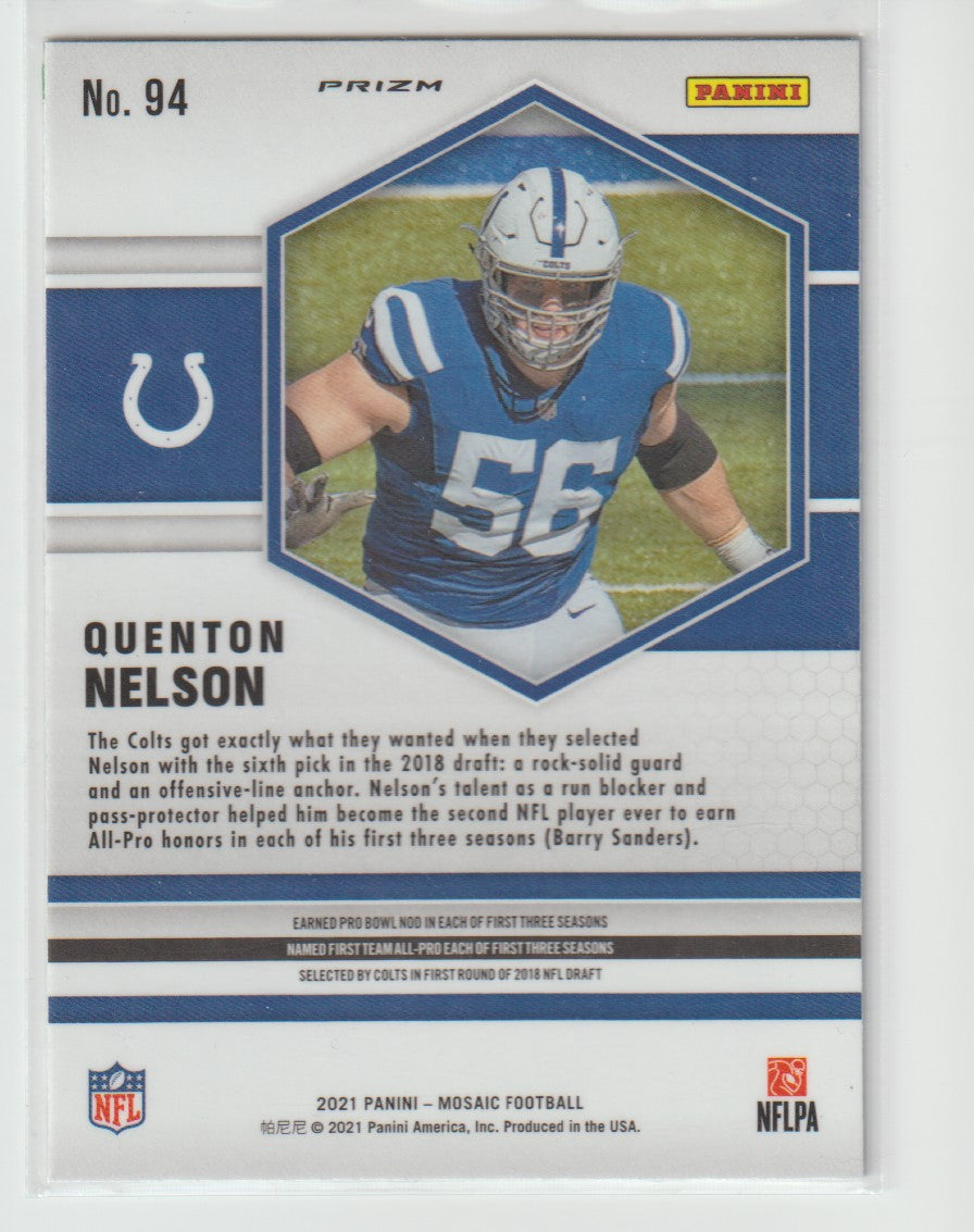 94 Quenton Nelson - Indianapolis Colts Green Parallel 2021 Mosaic Football, Ebay
