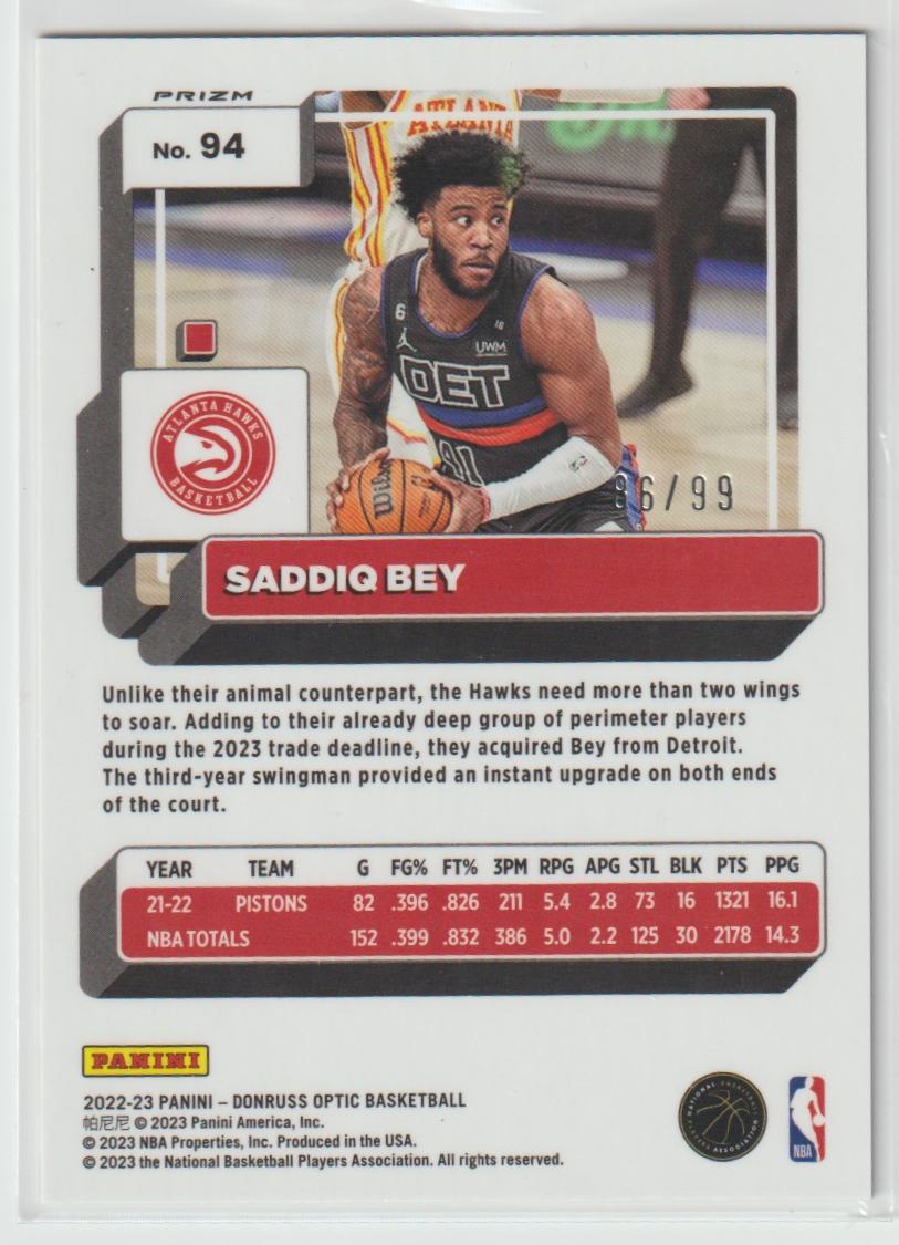 94 Saddiq Bey - Atlanta Hawks Red Wave 2022/23 Donruss Optic Basketball