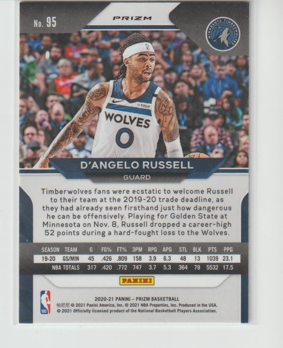 95 D'Angelo Russell - Minnesota Timberwolves Green Prizm 2020/21 Prizm Basketball
