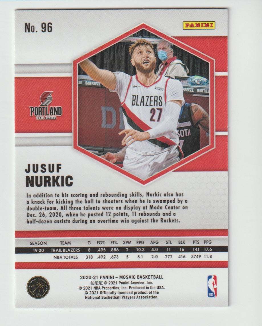 96 Jusuf Nurkic - Portland Trail Blazers 2020/21 Mosaic Basketball