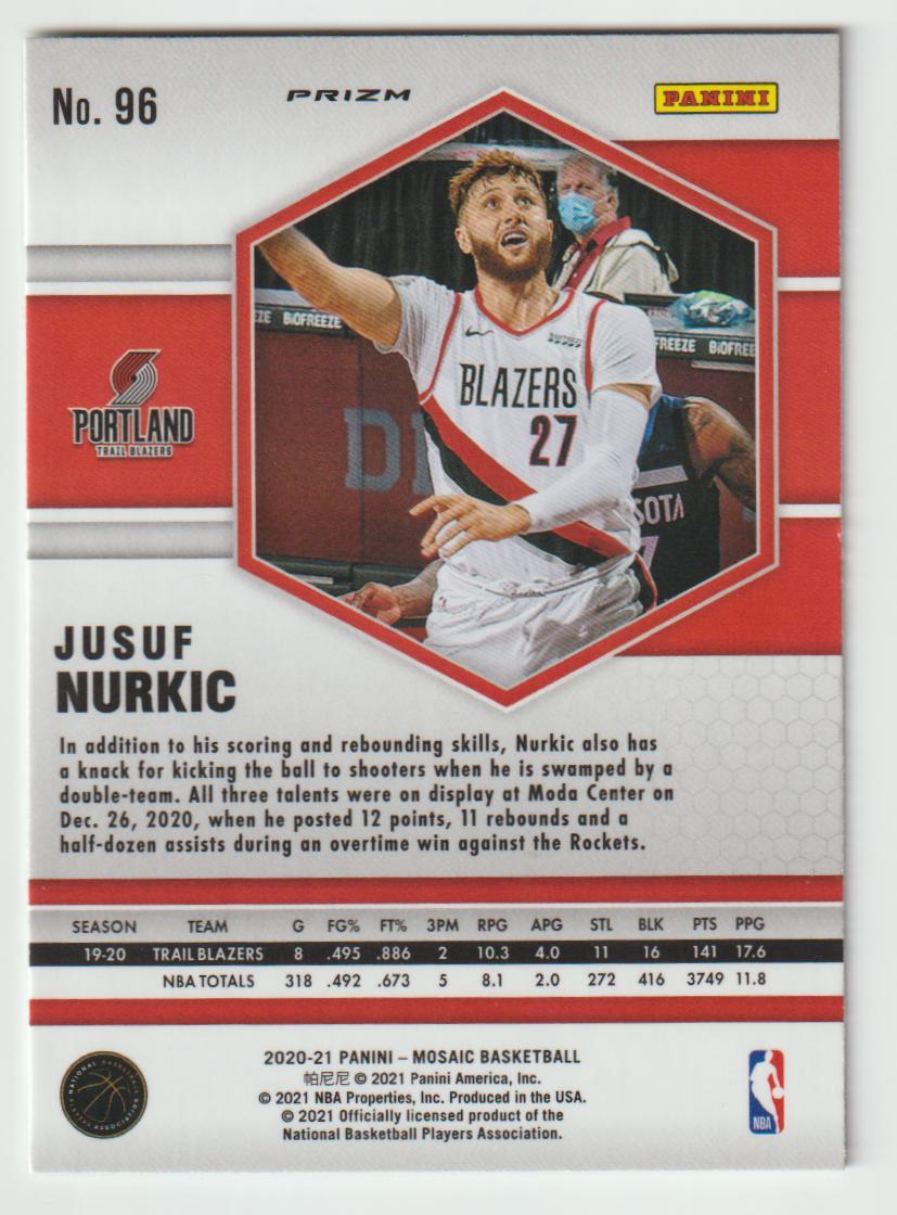 96 Jusuf Nurkic - Portland Trail Blazers Green 2020/21 Mosaic Basketball