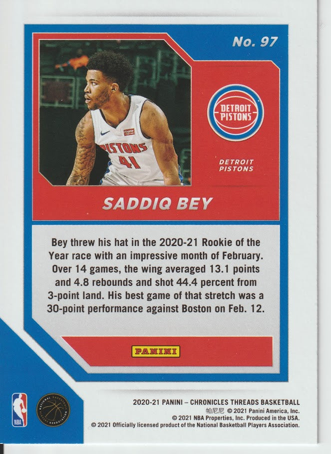 97 Saddiq Bey - Detroit Pistons 20/21 Chronicles Basketball