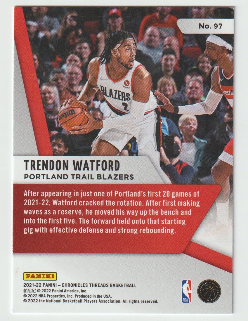 97 Trendon Watford - Portland Trail Blazers 2021/22 Chronicles Basketball