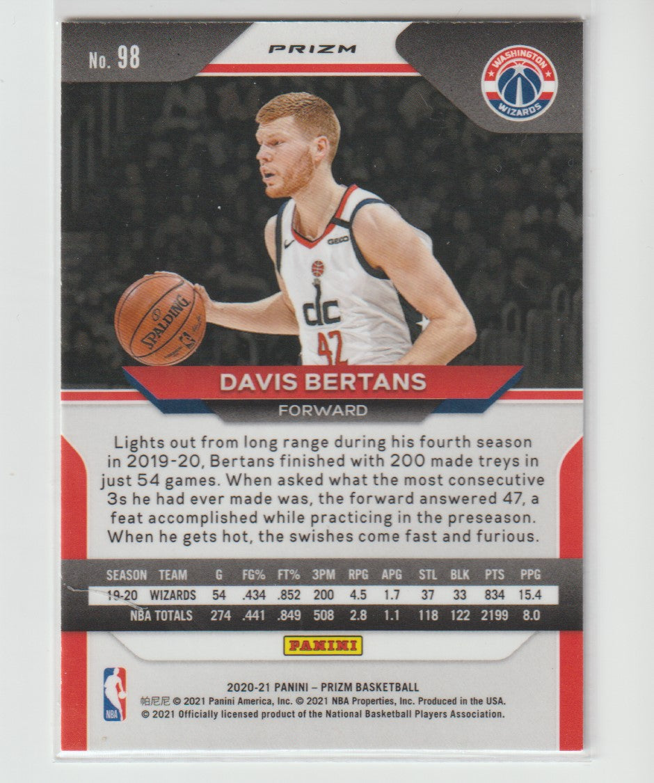 98 Davis Bertans - Washington Wizards Silver Prizm 2020/21 Prizm Basketball
