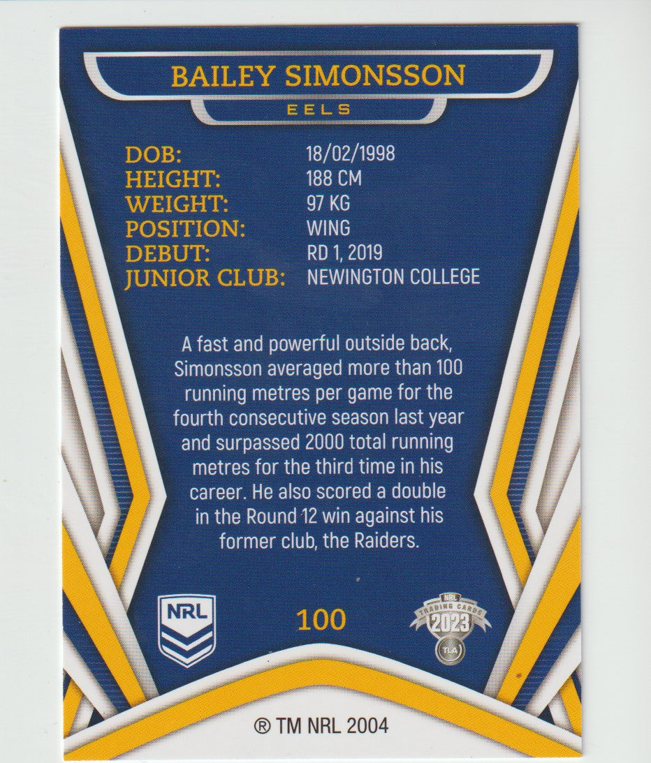 100 BAILEY SIMONSSON 2023 NRL Traders