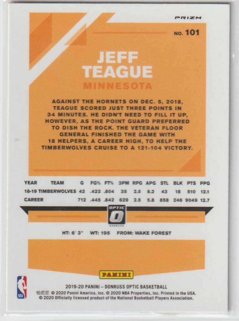 101 Jeff Teague - Minnesota Timberwolves Hyper Pink Prizm 2019/20 Donruss Optic Basketball