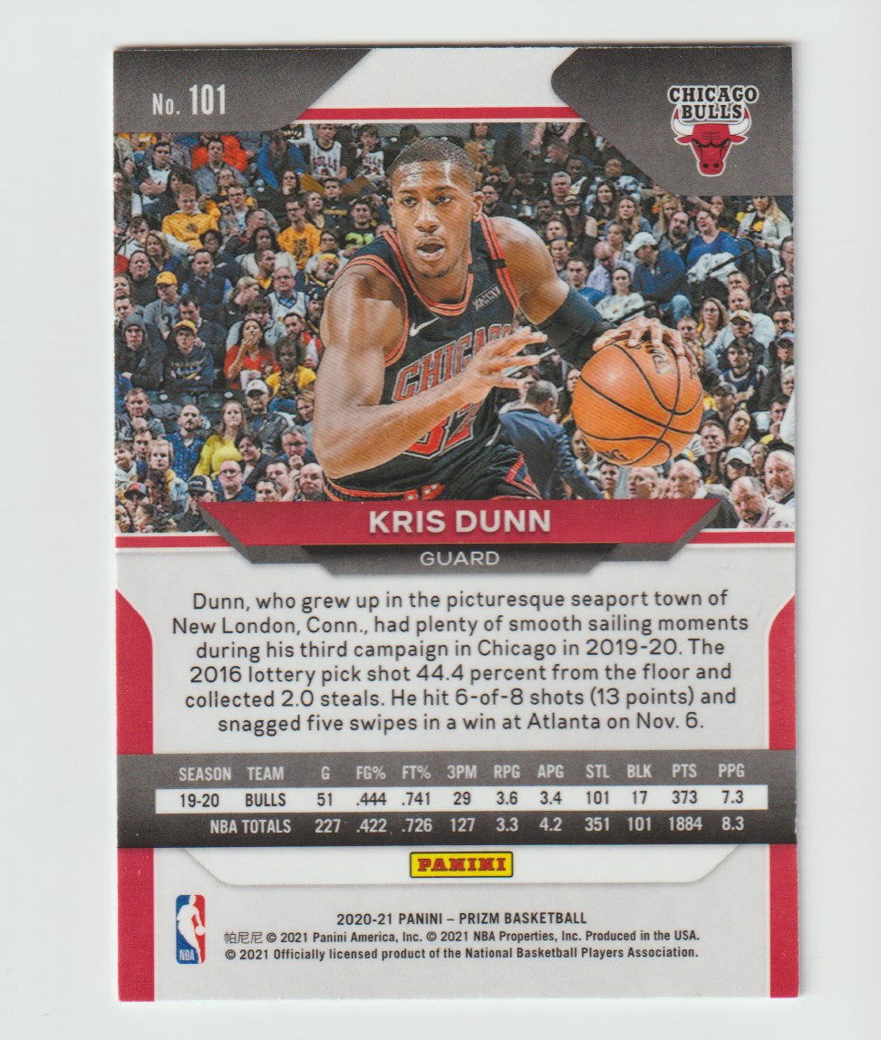 101 Kris Dunn - Chicago Bulls 2020/21 Prizm Basketball