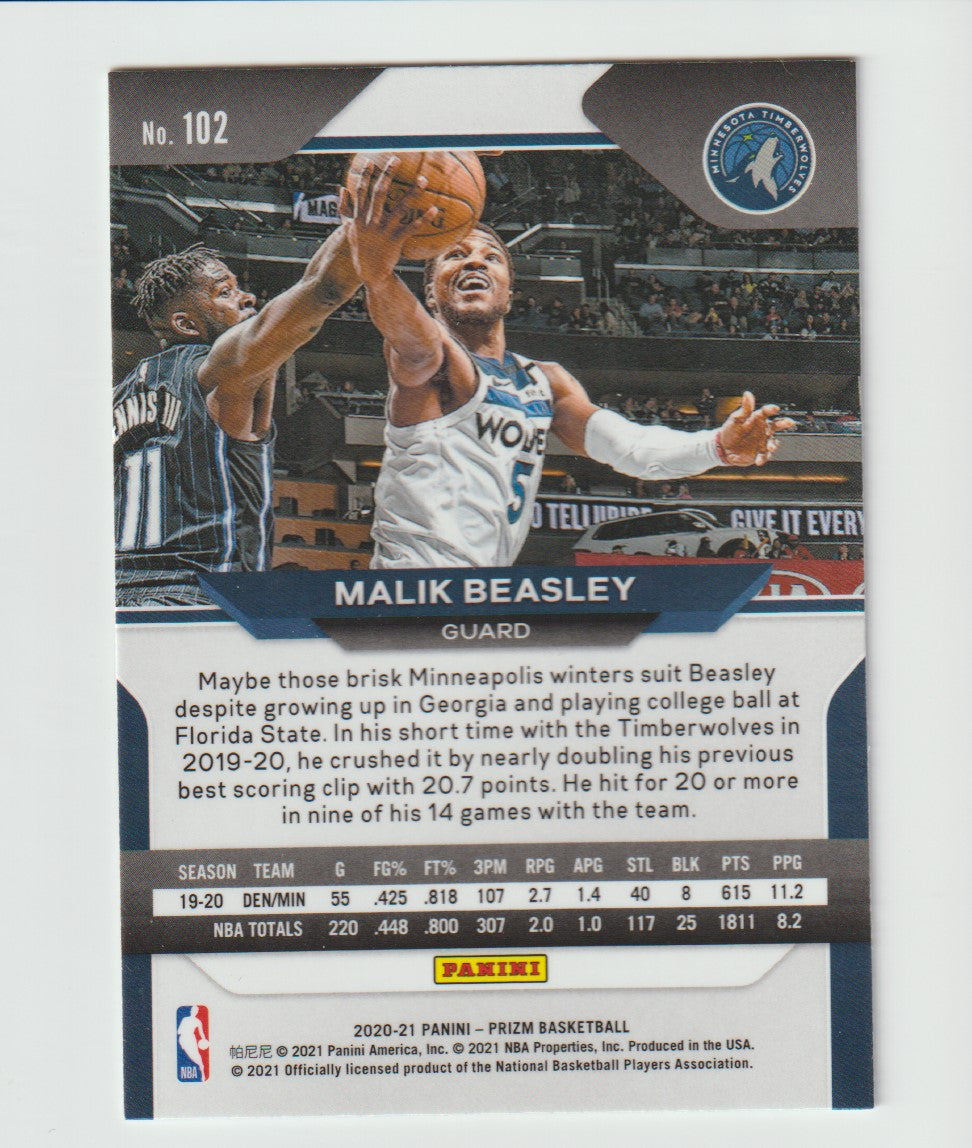 102 Malik Beasley - Minnesota Timberwolves 2020/21 Prizm Basketball
