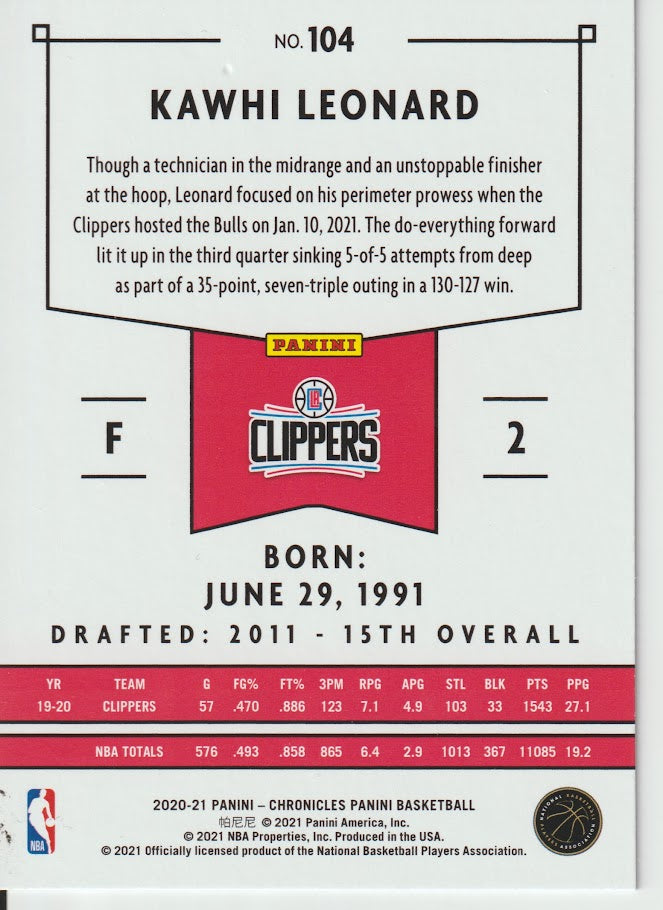 104 Kawhi Leonard - Los Angeles Clippers 20/21 Chronicles Basketball
