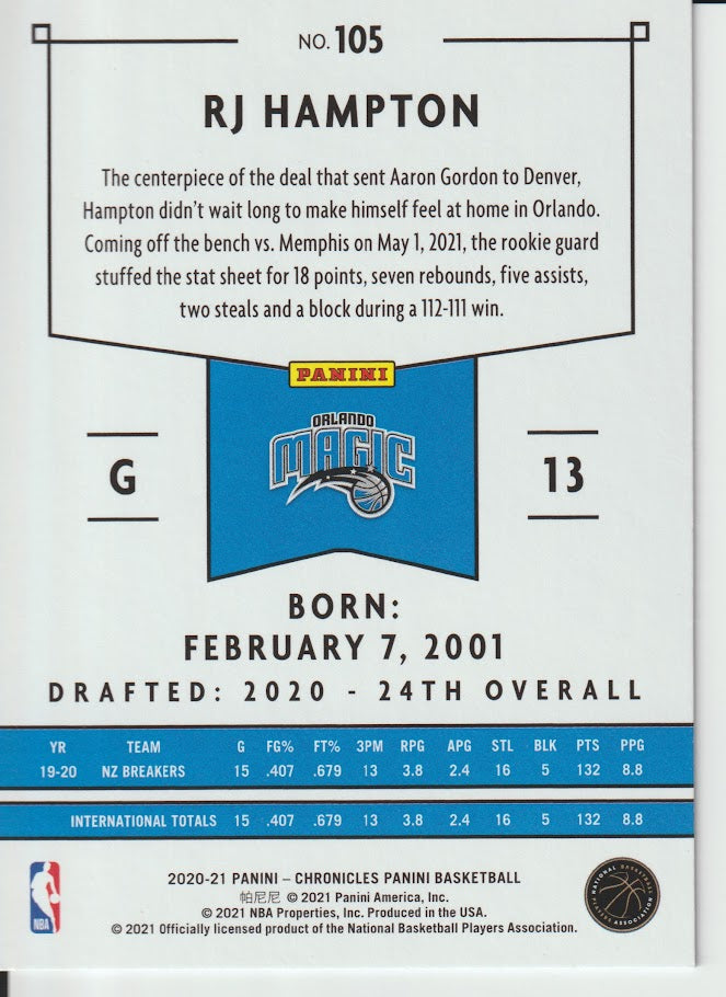 105 RJ Hampton - Orlando Magic 20/21 Chronicles Basketball