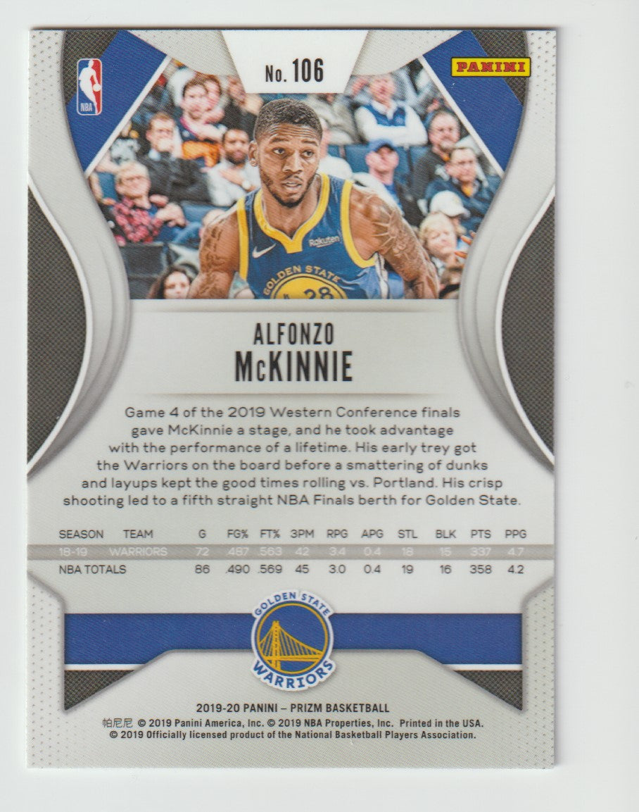106 Alfonzo McKinnie - Golden State Warriors 2019/20 Prizm Basketball