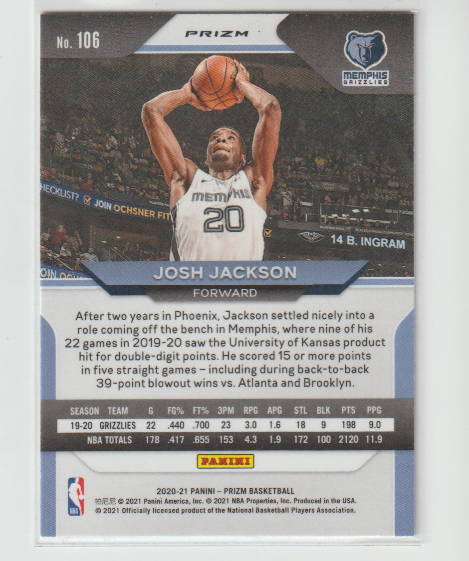 106 Josh Jackson - Memphis Grizzlies Silver Prizm 2020/21 Prizm Basketball