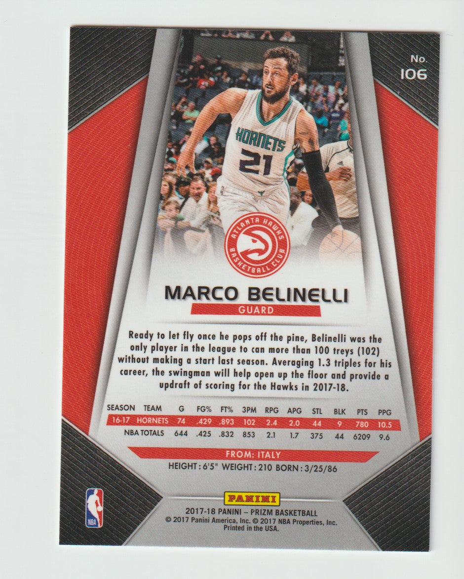 106 Marco Belinelli - Atlanta Hawks 2017/18 Prizm Basketball