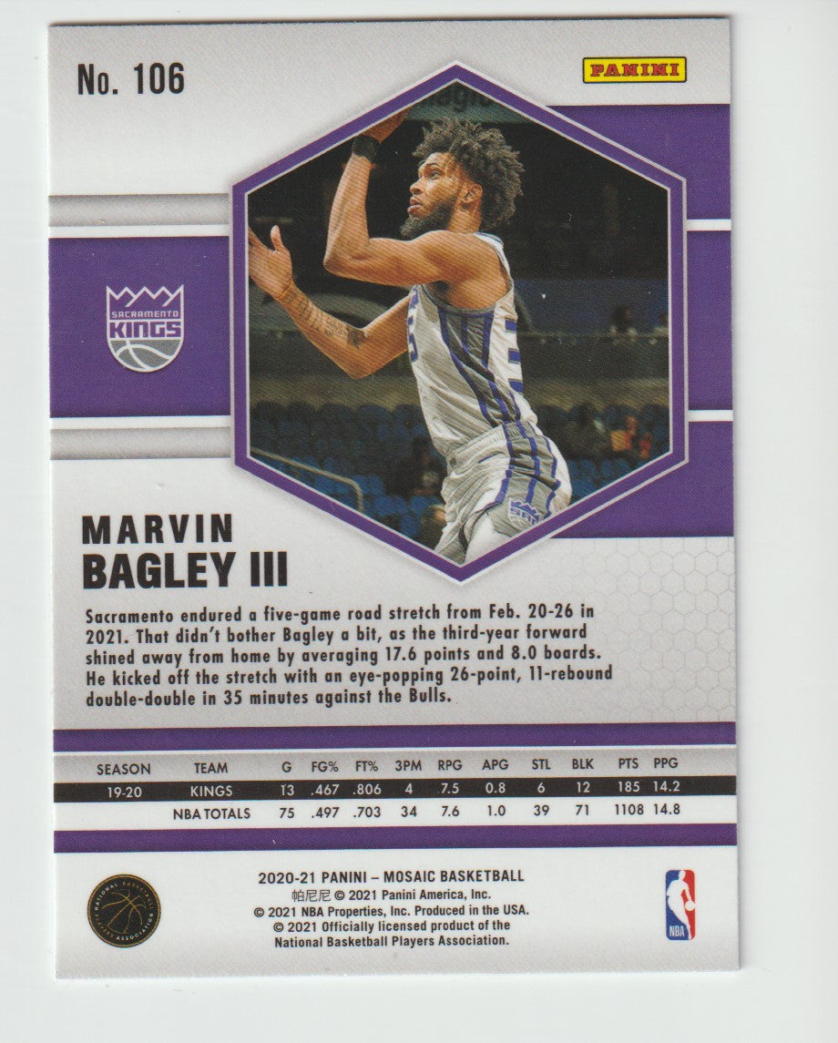 106 Marvin Bagley III - Sacramento Kings 2020/21 Mosaic Basketball