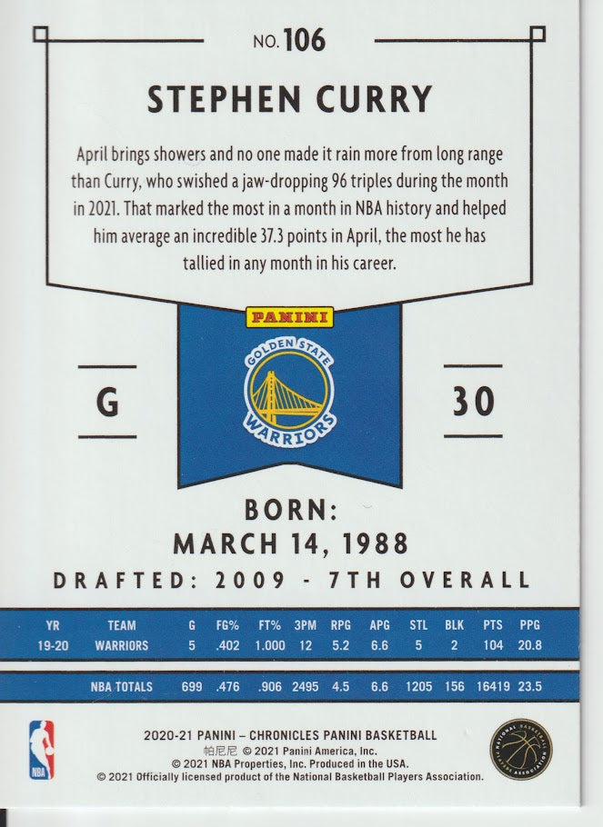 106 Stephen Curry - Golden State Warriors 20/21 Chronicles Basketball