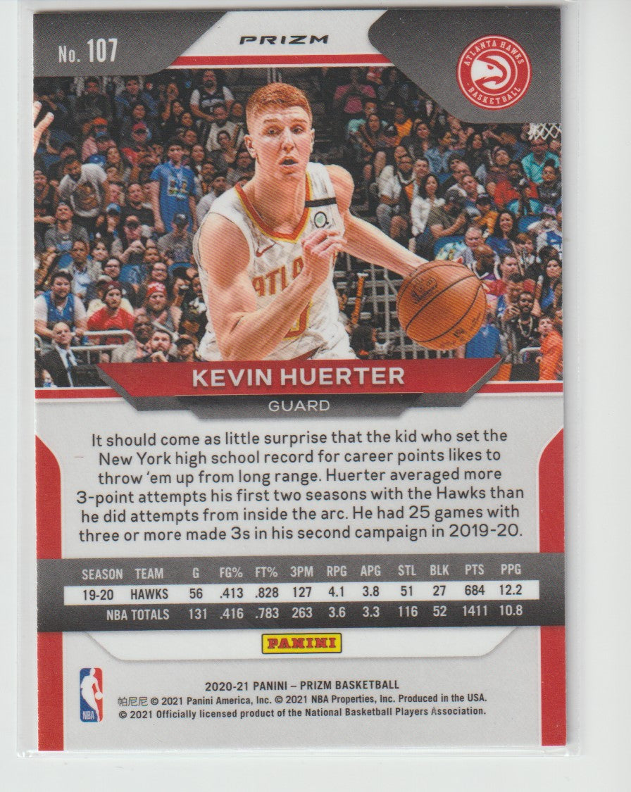 107 Kevin Huerter - Atlanta Hawks Red White Blue Prizm 2020/21 Prizm Basketball