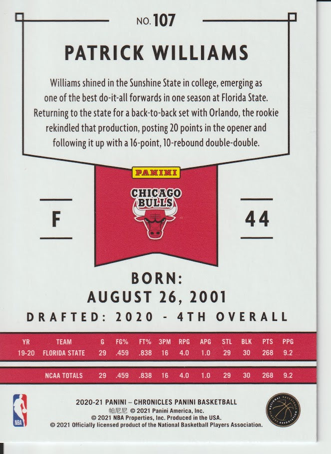107 Patrick Williams - Chicago Bulls 20/21 Chronicles Basketball