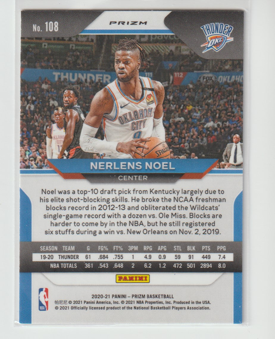 108 Nerlens Noel - Oklahoma City Thunder Blue Wave Prizm 2020/21 Prizm Basketball