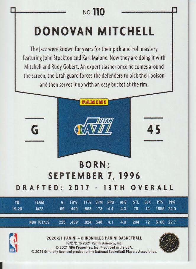 110 Donovan Mitchell - Utah Jazz 20/21 Chronicles Basketball