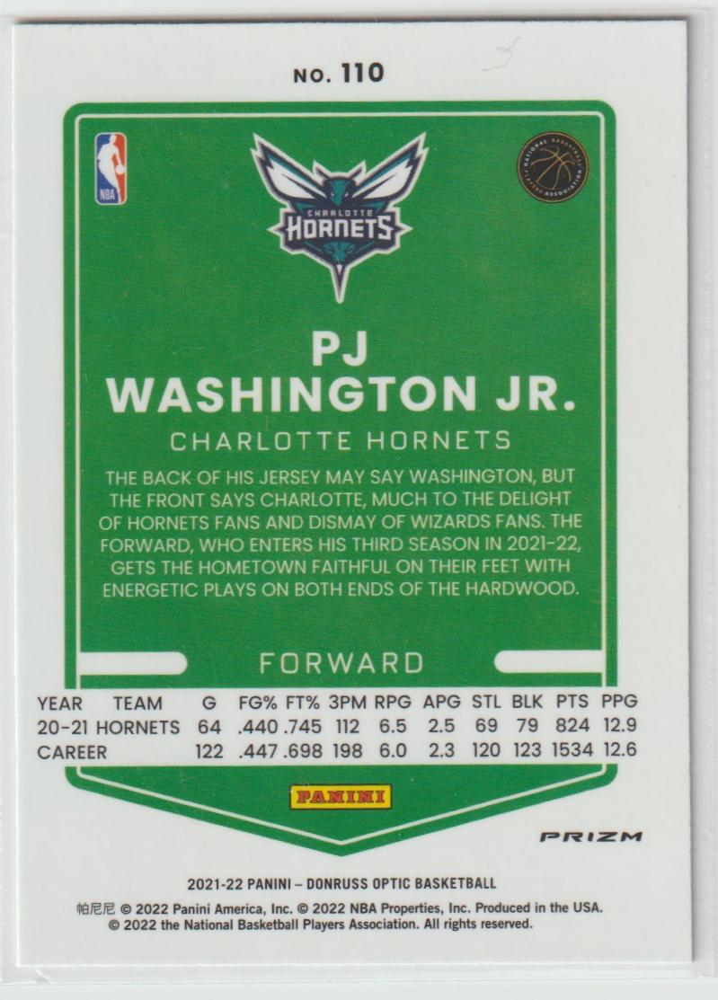 110 PJ Washington Jr. - Charlotte Hornets Holo 2021/22 Donruss Optic Basketball