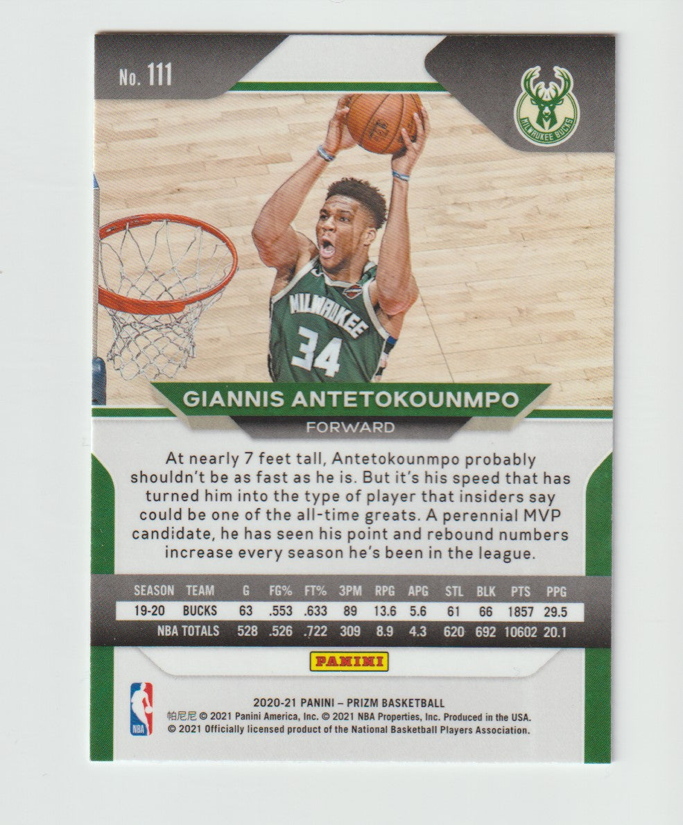 111 Giannis Antetokounmpo - Milwaukee Bucks 2020/21 Prizm Basketball