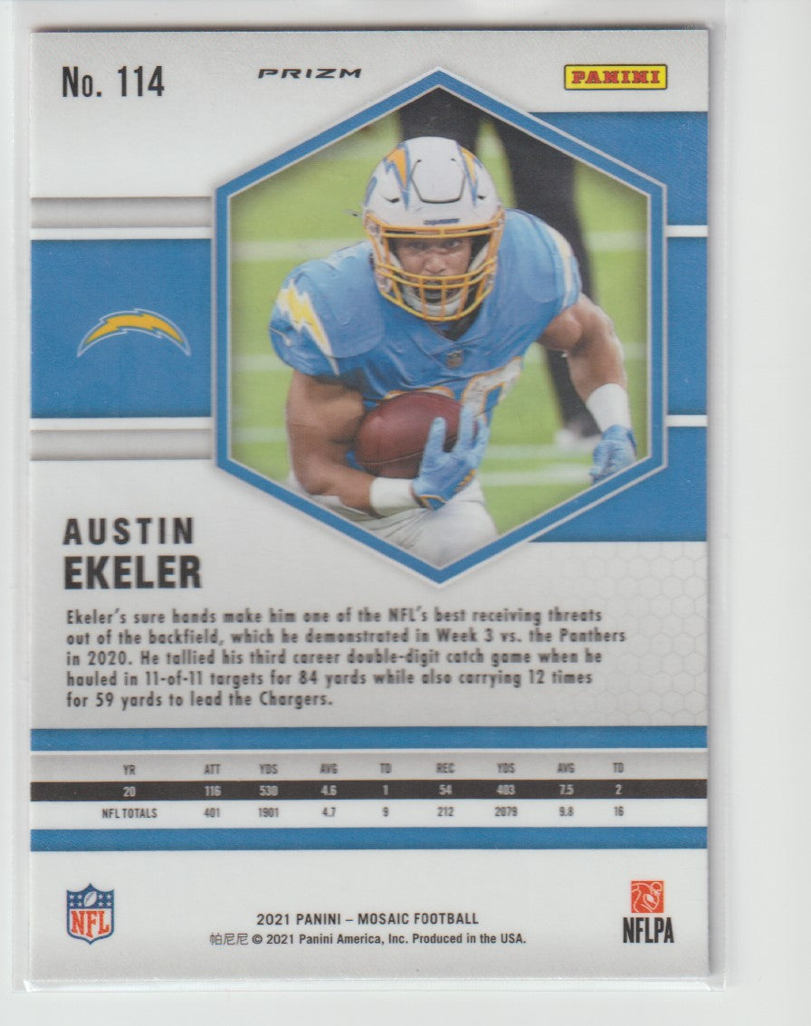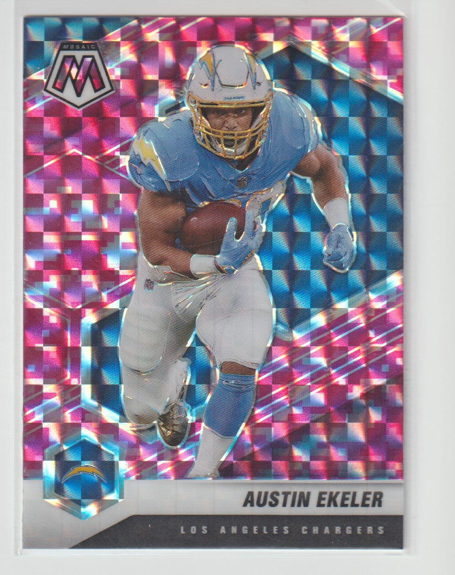 114 Austin Ekeler - Los Angeles Chargers Camo Pink Parallel 2021 Mosaic Football, Ebay