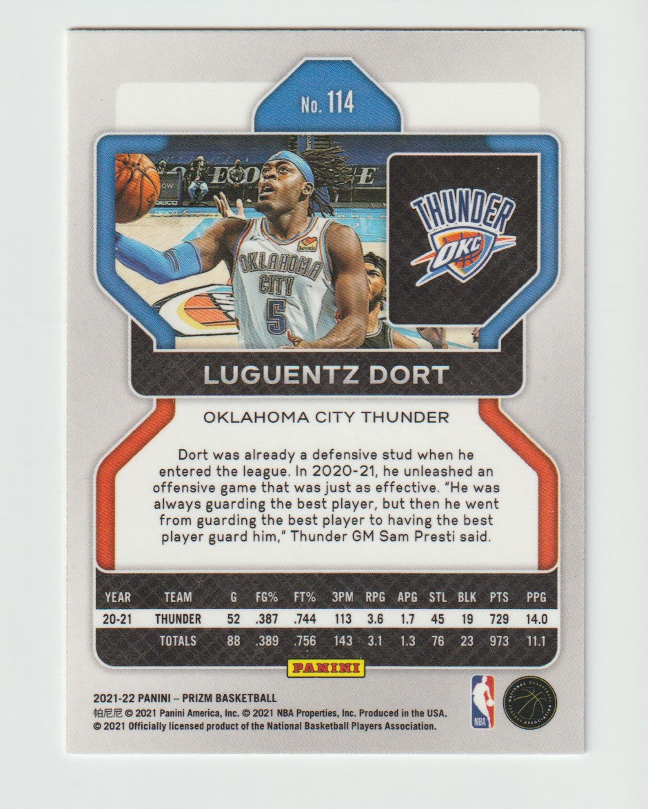 114 Luguentz Dort - Oklahoma City Thunder 2021/22 Prizm Basketball