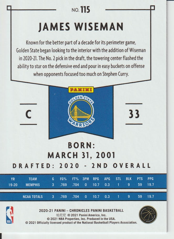 115 James Wiseman - Golden State Warriors 20/21 Chronicles Basketball