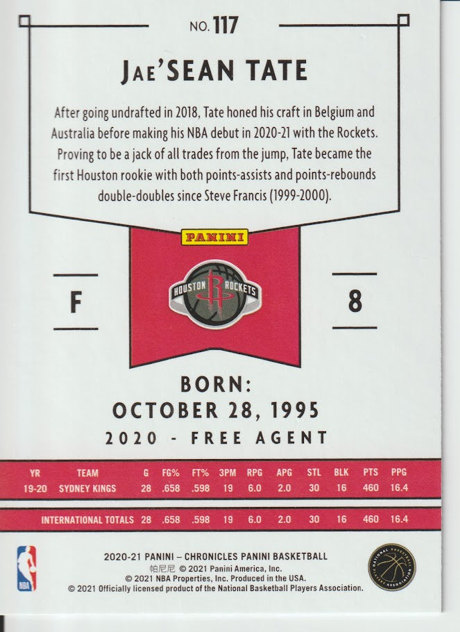 117 Jae'Sean Tate - Houston Rockets 20/21 Chronicles Basketball