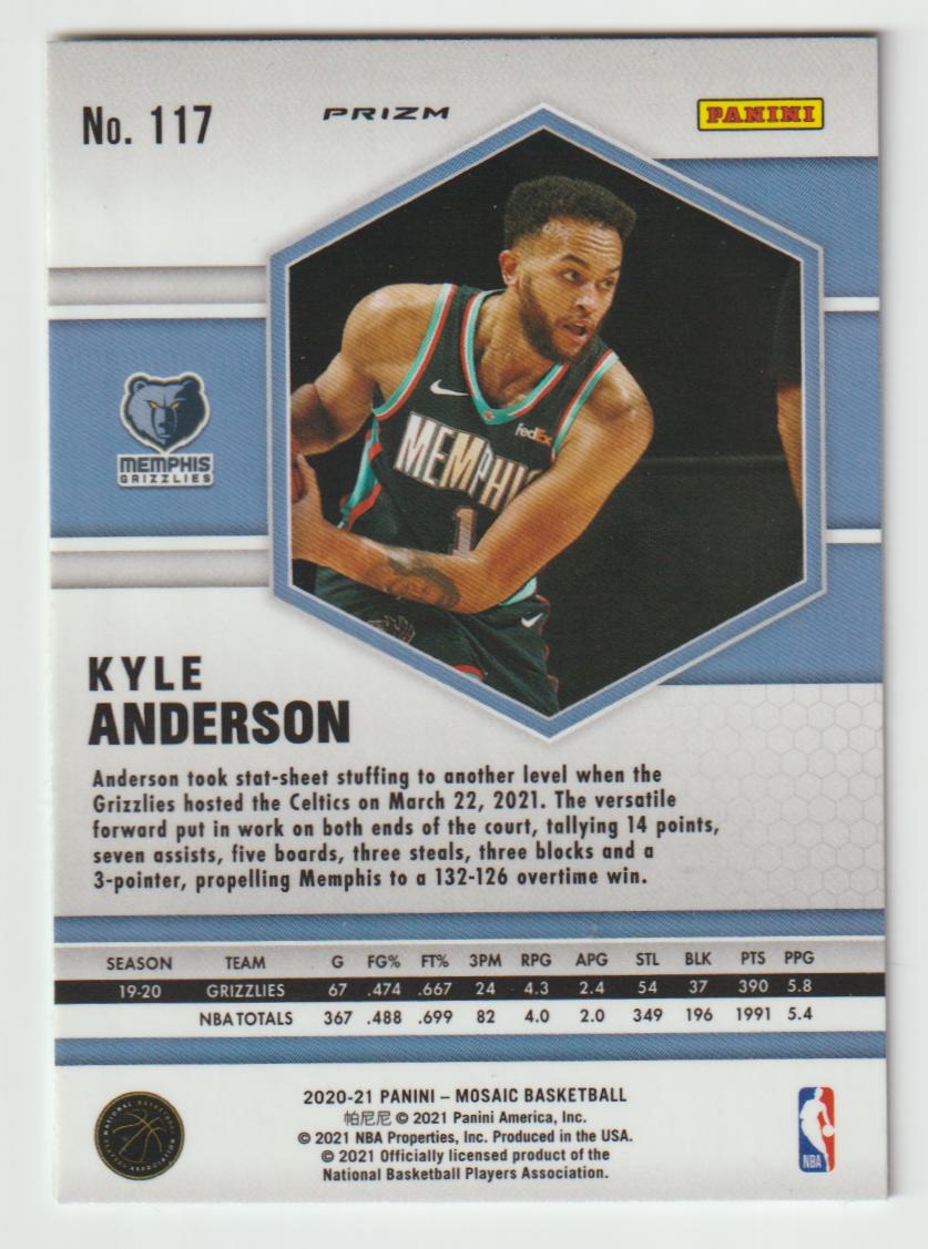 117 Kyle Anderson - Memphis Grizzlies Green 2020/21 Mosaic Basketball